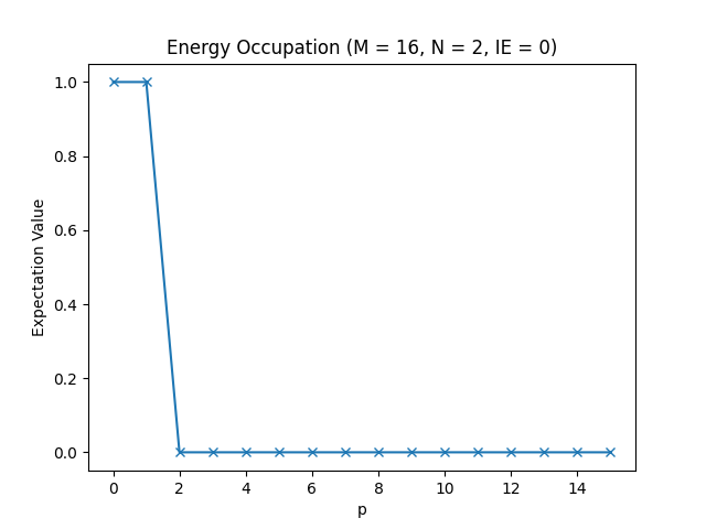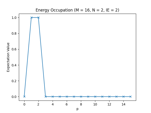 The energy occupations for M=16, N=2, IE=0.