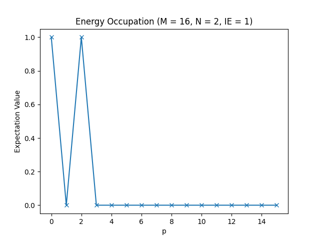 The energy occupations for M=16, N=2, IE=1.